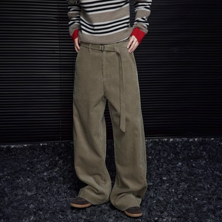 【予約販売】コーデュロイワイドパンツ ベルト付