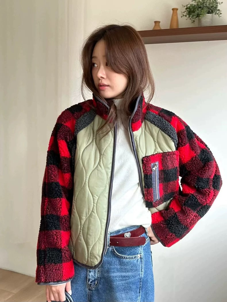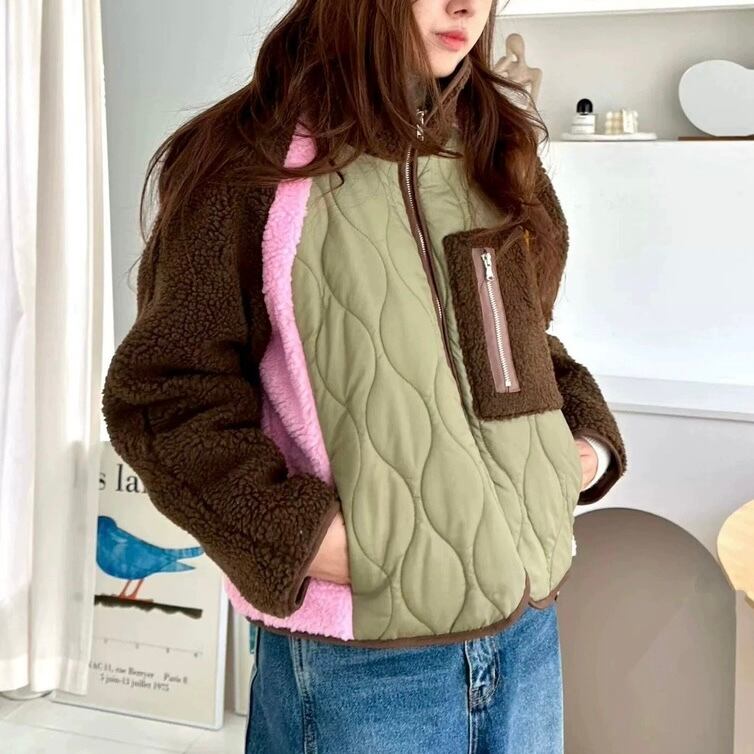 【予約販売】レトロ ボア&キルティング切替えジャケット