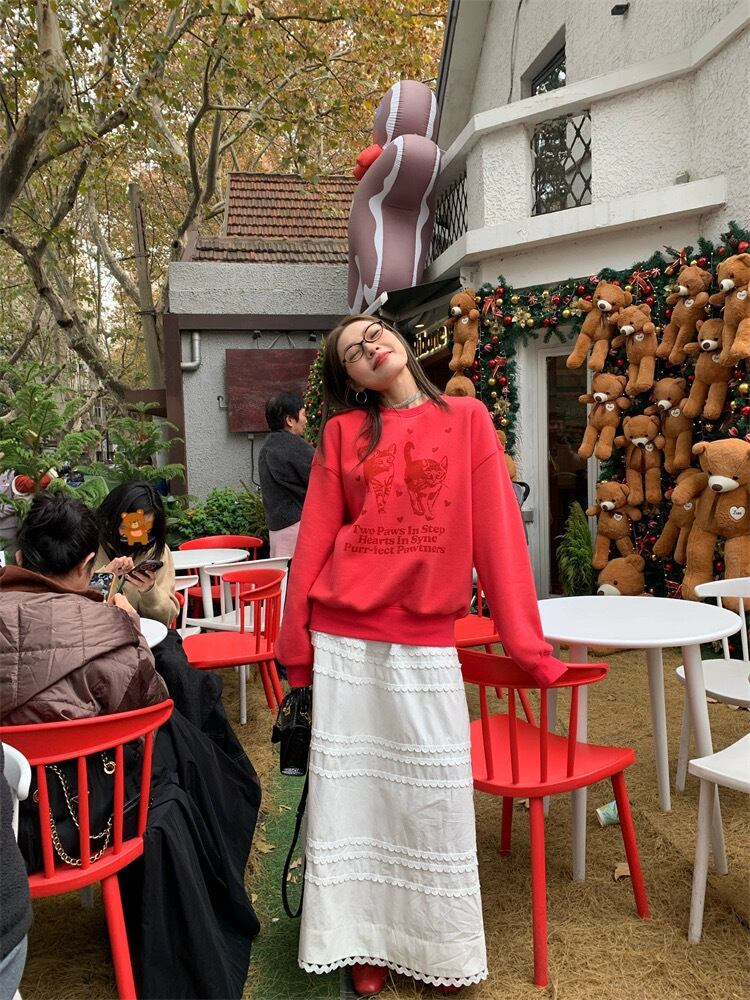 【予約販売】W CAT'S プリントスウェットシャツ#レッド