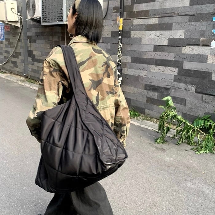 【予約販売】大容量キルティングショルダーバッグ #ブラック