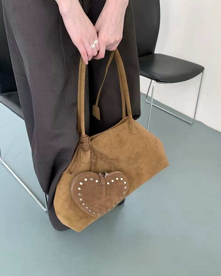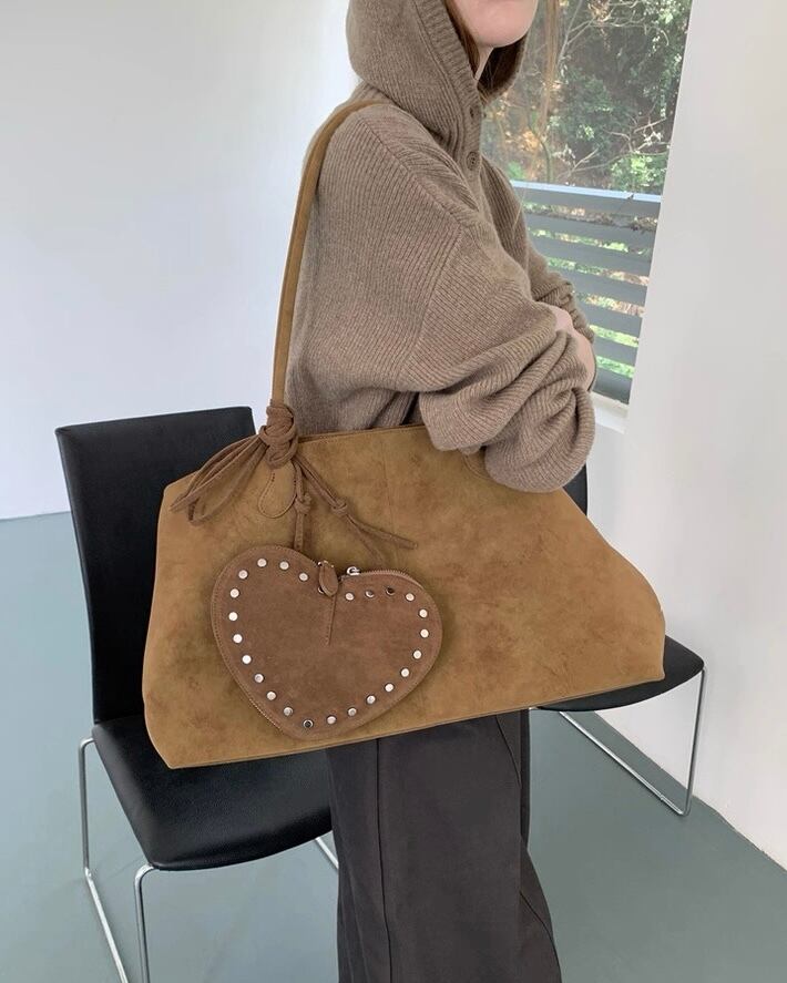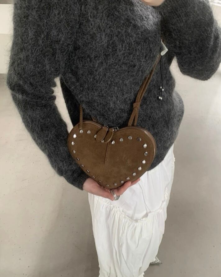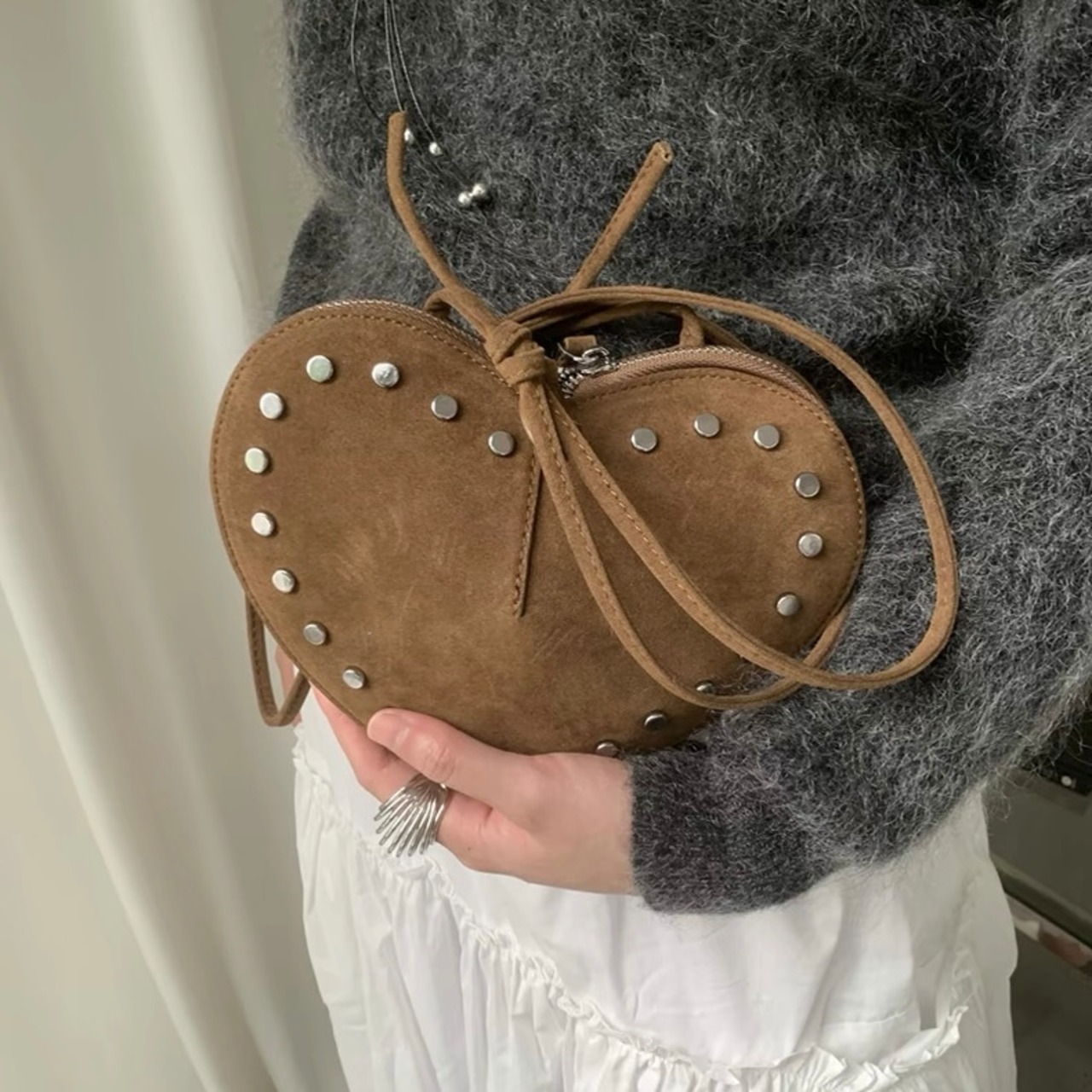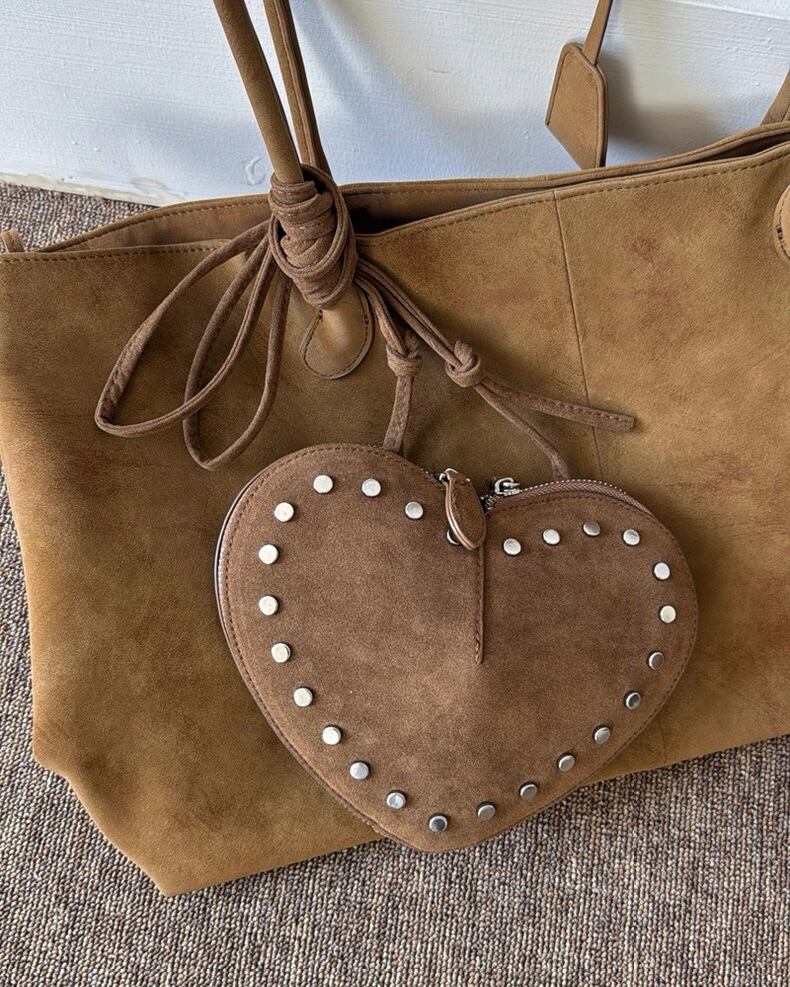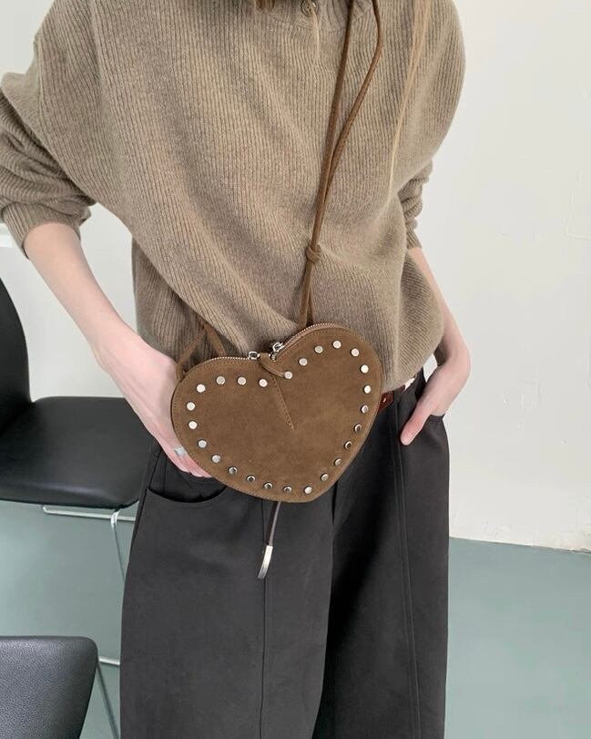【予約販売】スタッズ付ハートスエードショルダーバッグ
