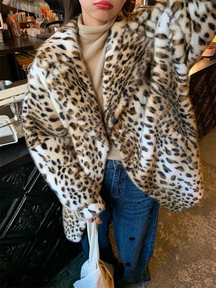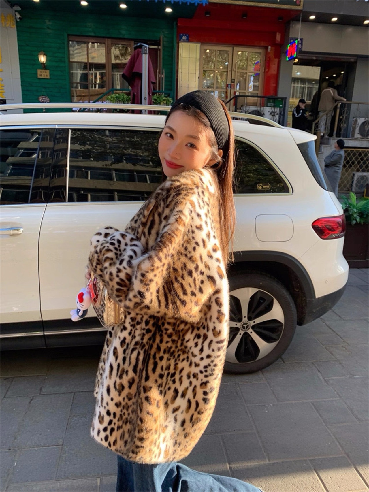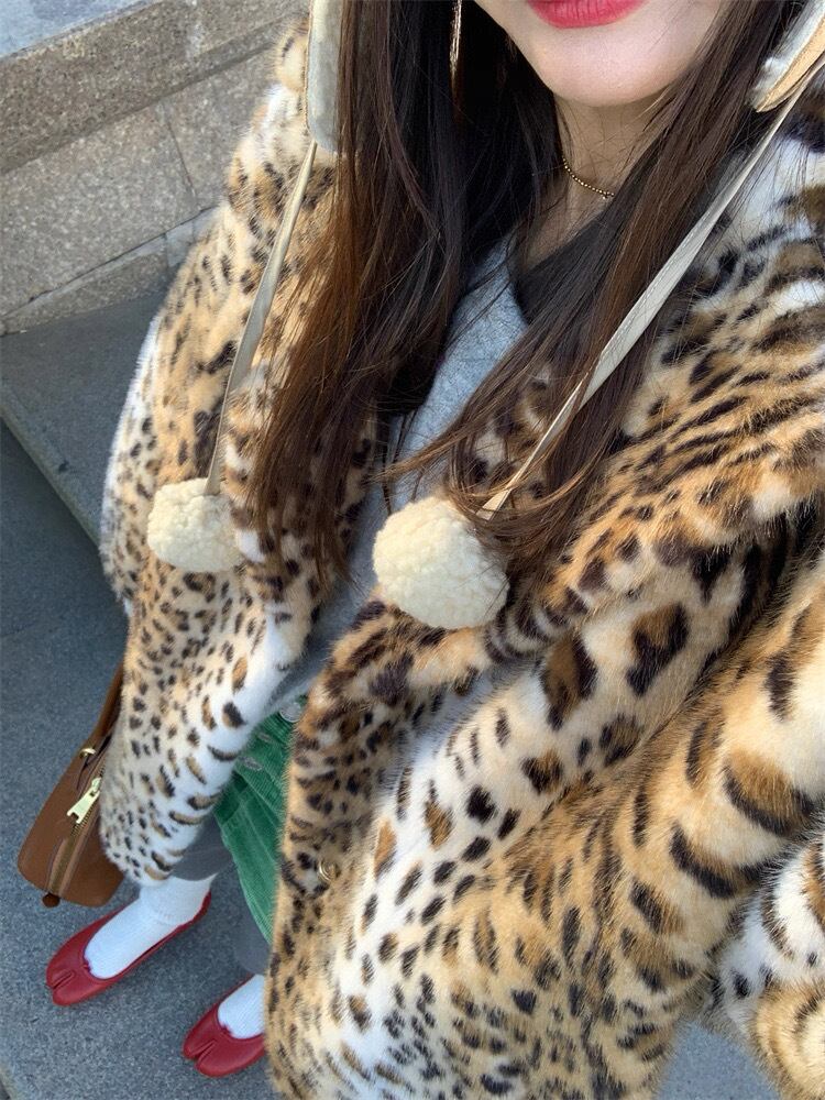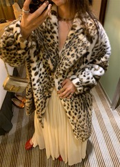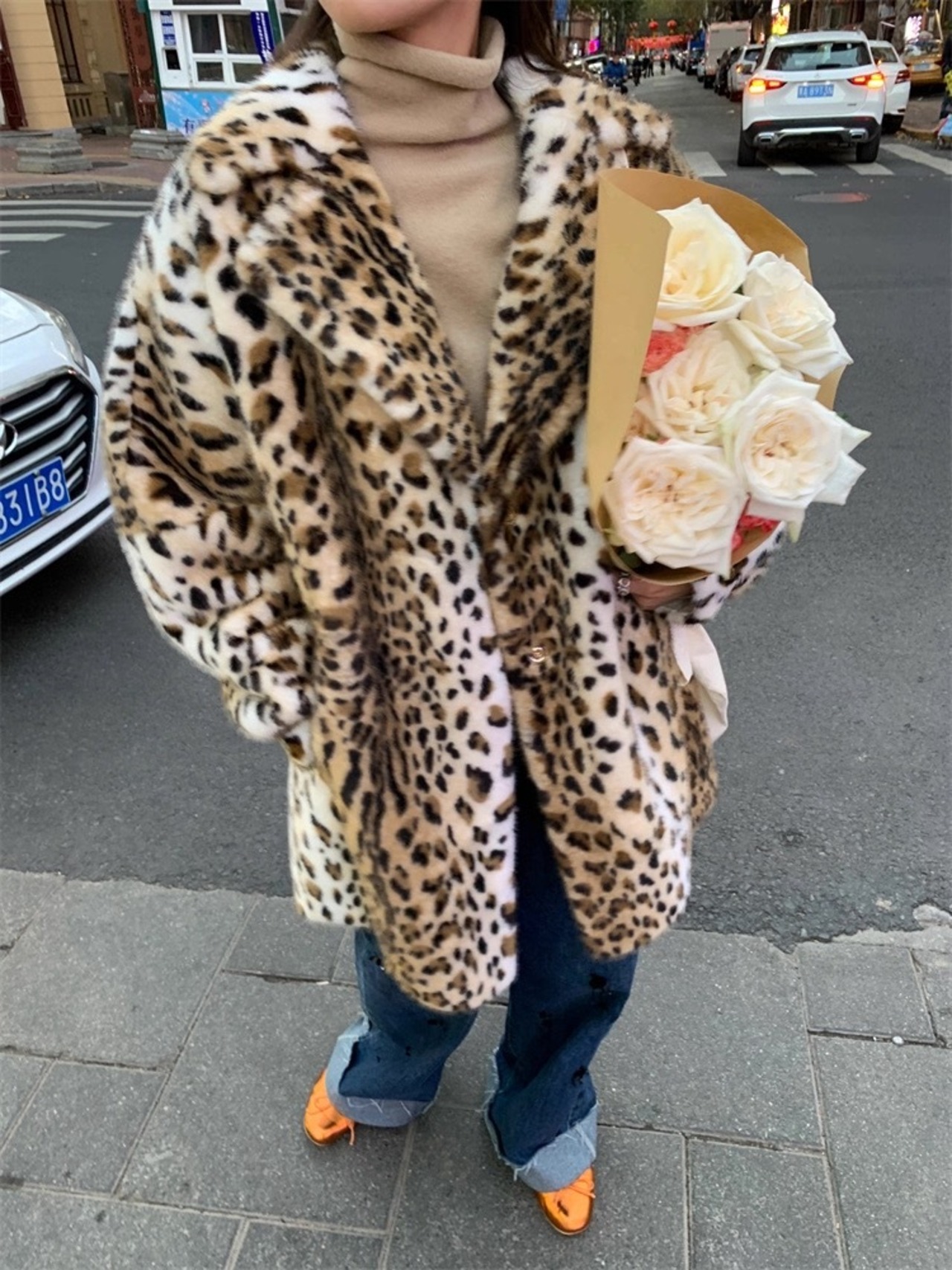 このクラシックなヒョウ柄ファーコートは、洗練されたエレガントな雰囲気を醸し出します。顔色を明るくし、輝きを放つ、まさに「リッチレディ」ルックを演出します。カラーもスタイリッシュで、クラシックでありながら万能なベージュキャメルカラーは、どんな肌色や体型にも似合います。このラグジュアリーでハイエンドなルックには、レザーパンツとロングブーツを合わせた、まさに高貴で力強いスタイルがおすすめです。
