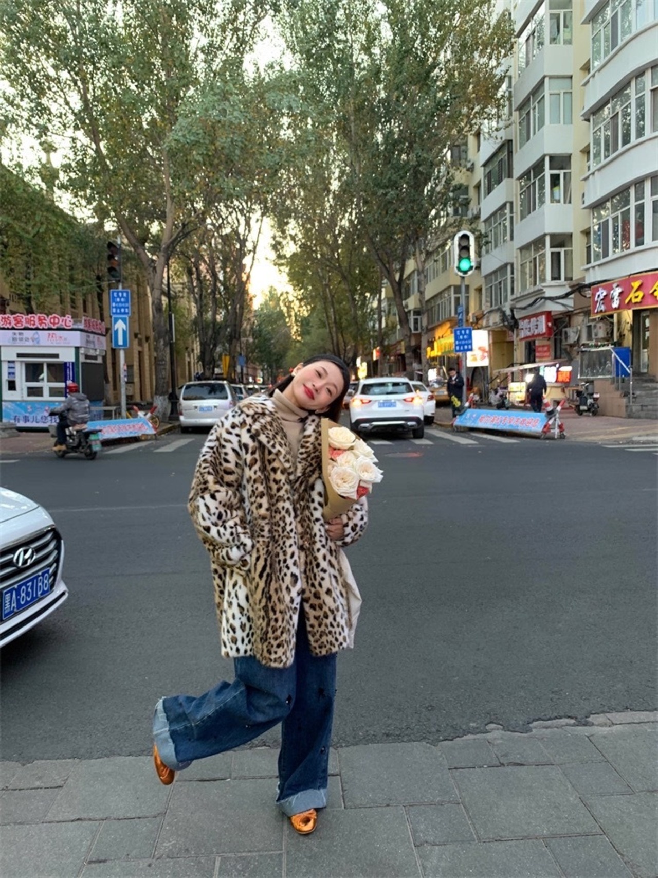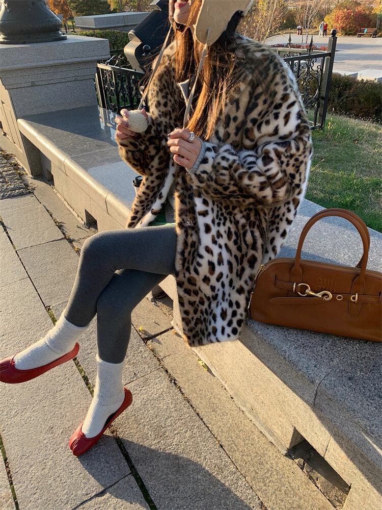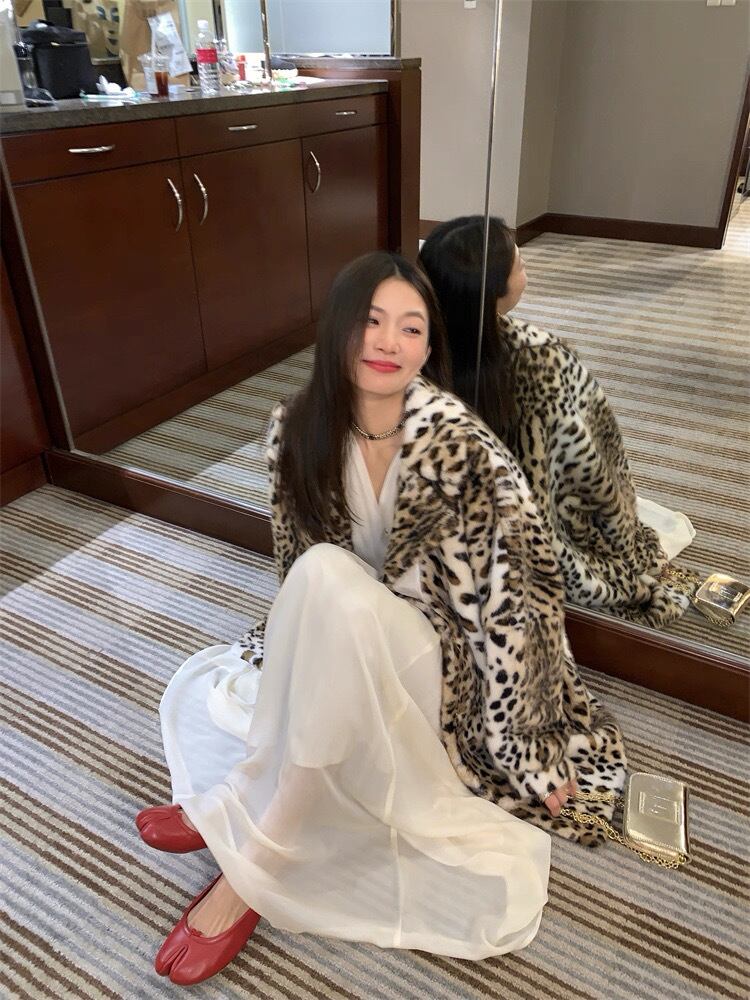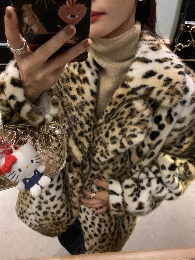 このクラシックなヒョウ柄ファーコートは、洗練されたエレガントな雰囲気を醸し出します。顔色を明るくし、輝きを放つ、まさに「リッチレディ」ルックを演出します。カラーもスタイリッシュで、クラシックでありながら万能なベージュキャメルカラーは、どんな肌色や体型にも似合います。このラグジュアリーでハイエンドなルックには、レザーパンツとロングブーツを合わせた、まさに高貴で力強いスタイルがおすすめです。