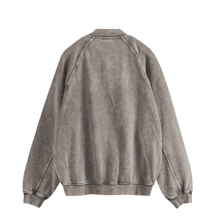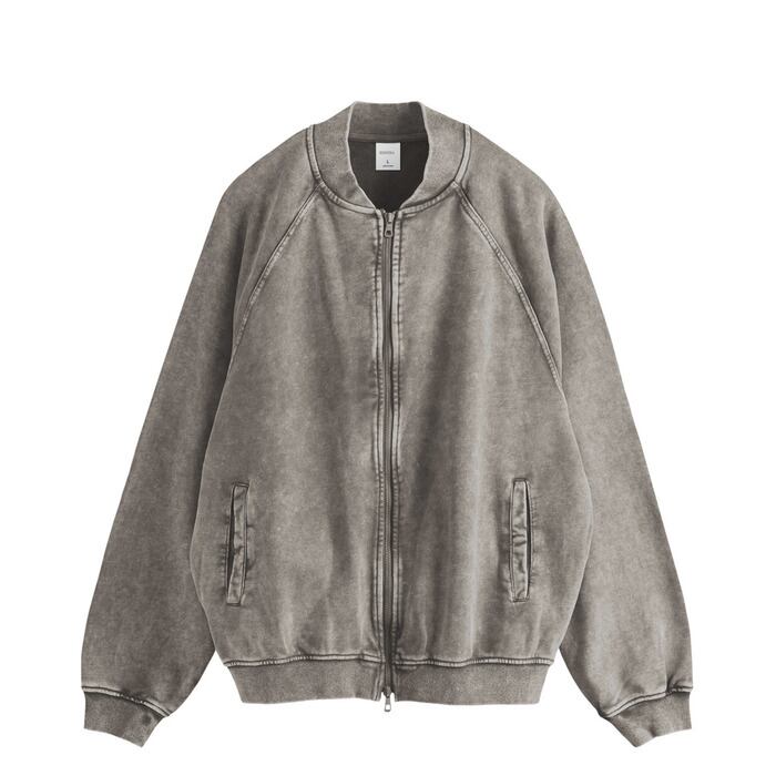 ウォッシュ加工仕立てのスウェットブルゾン。