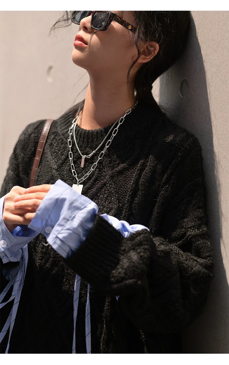 【予約販売】オーバーサイズ 袖シャツ切替えニットプルオーバー