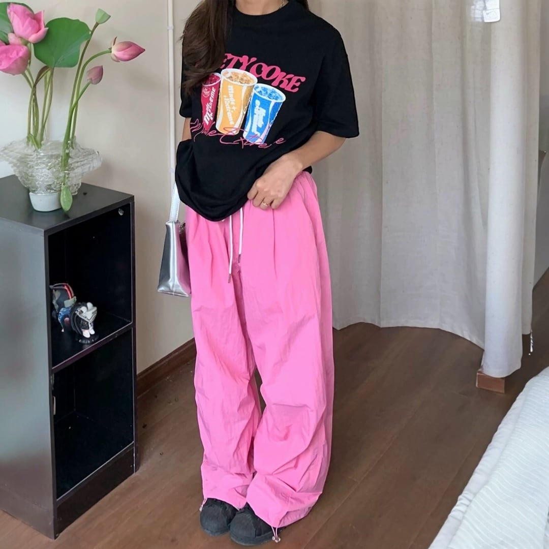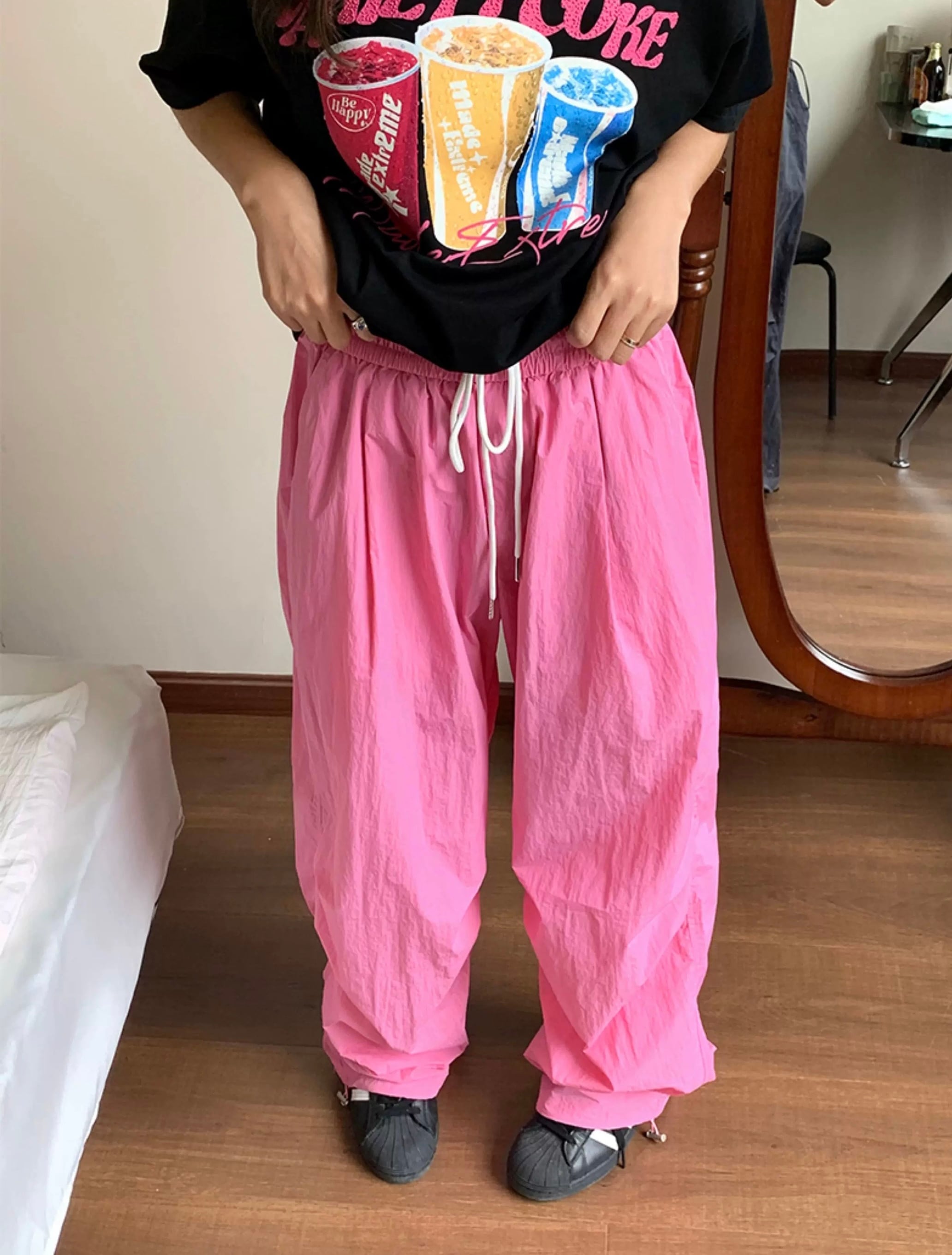 春らしいカラーで、速乾サラサラ生地のリラックスイージーパンツです。