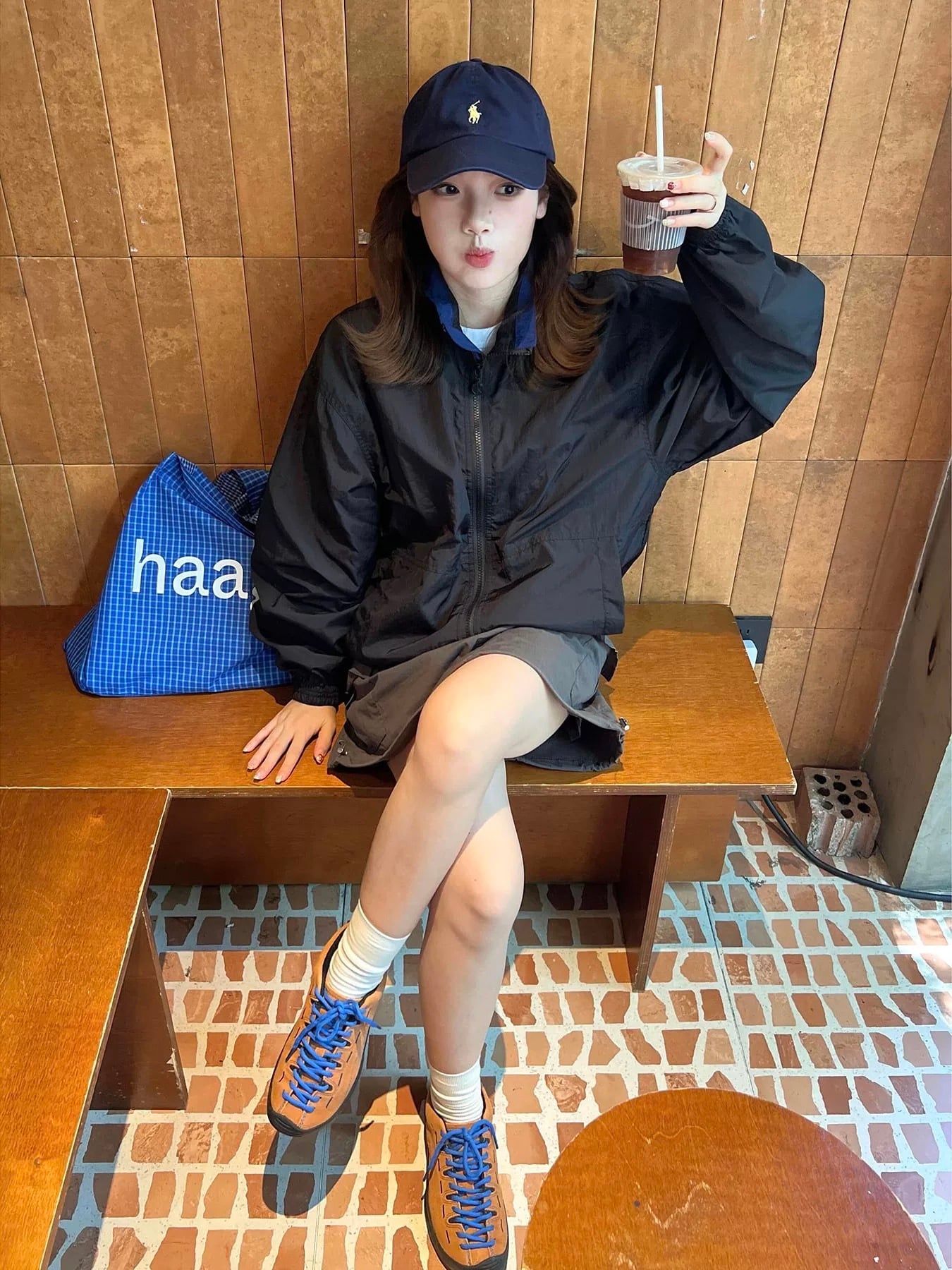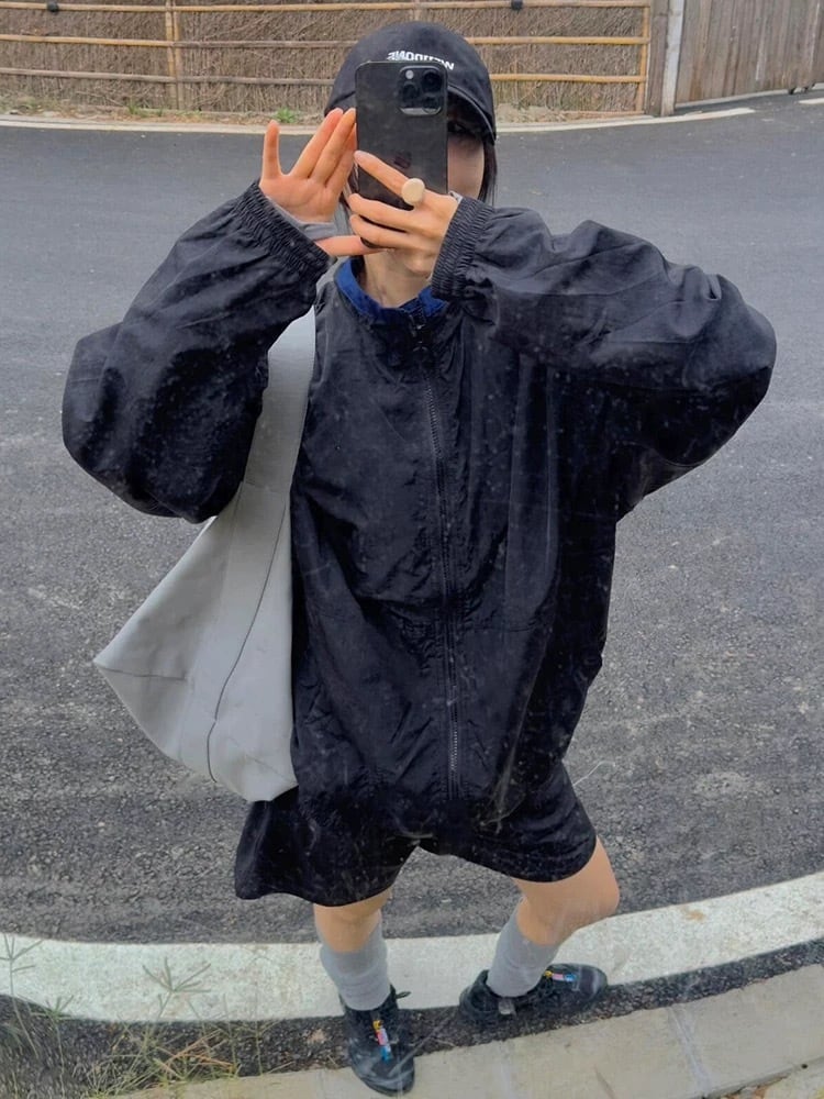 【予約販売】バイカラー ナイロンジャケット ブラック/ネイビー