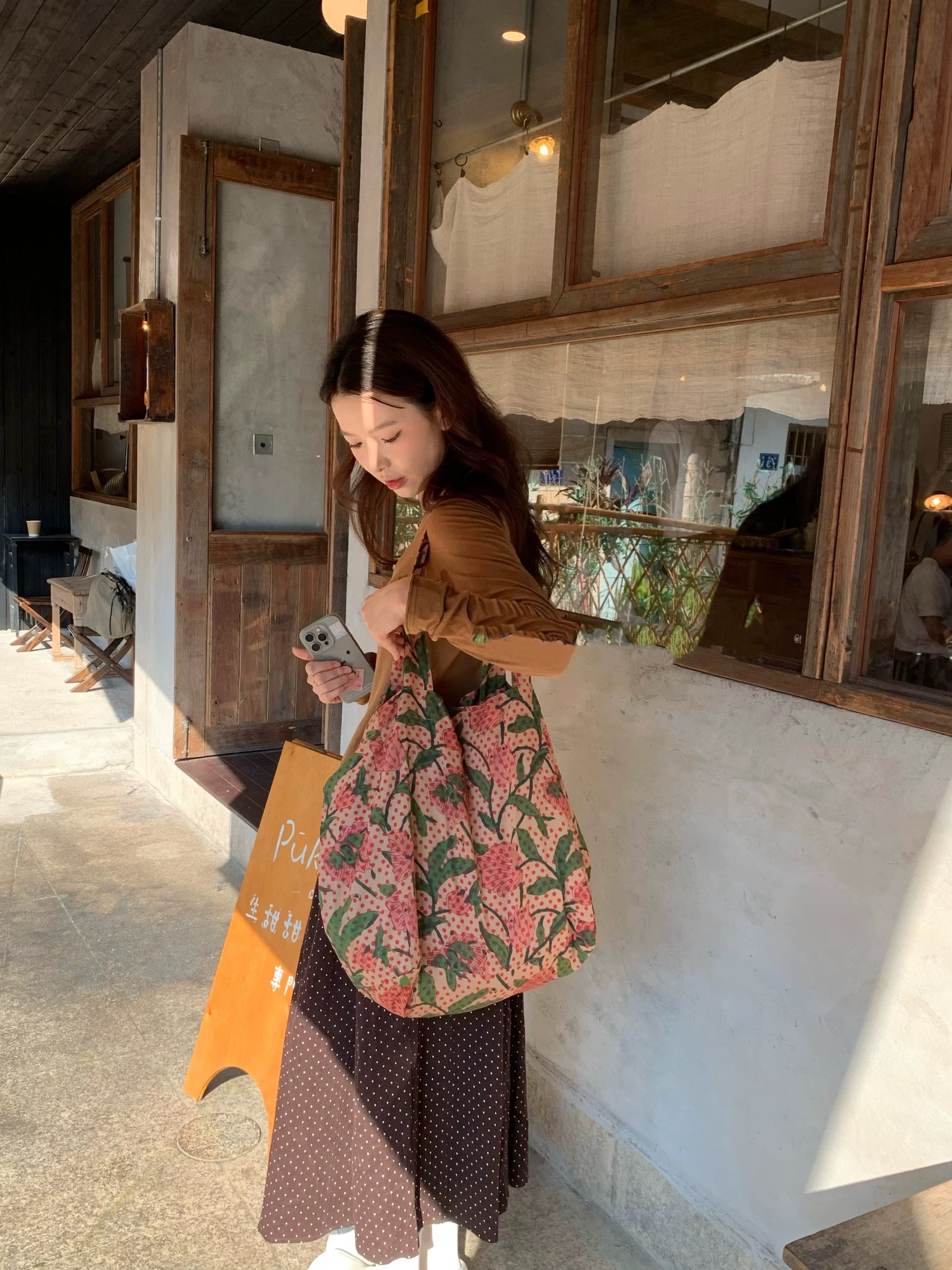 【予約販売】レトロ ドットフラワー柄トートバッグ