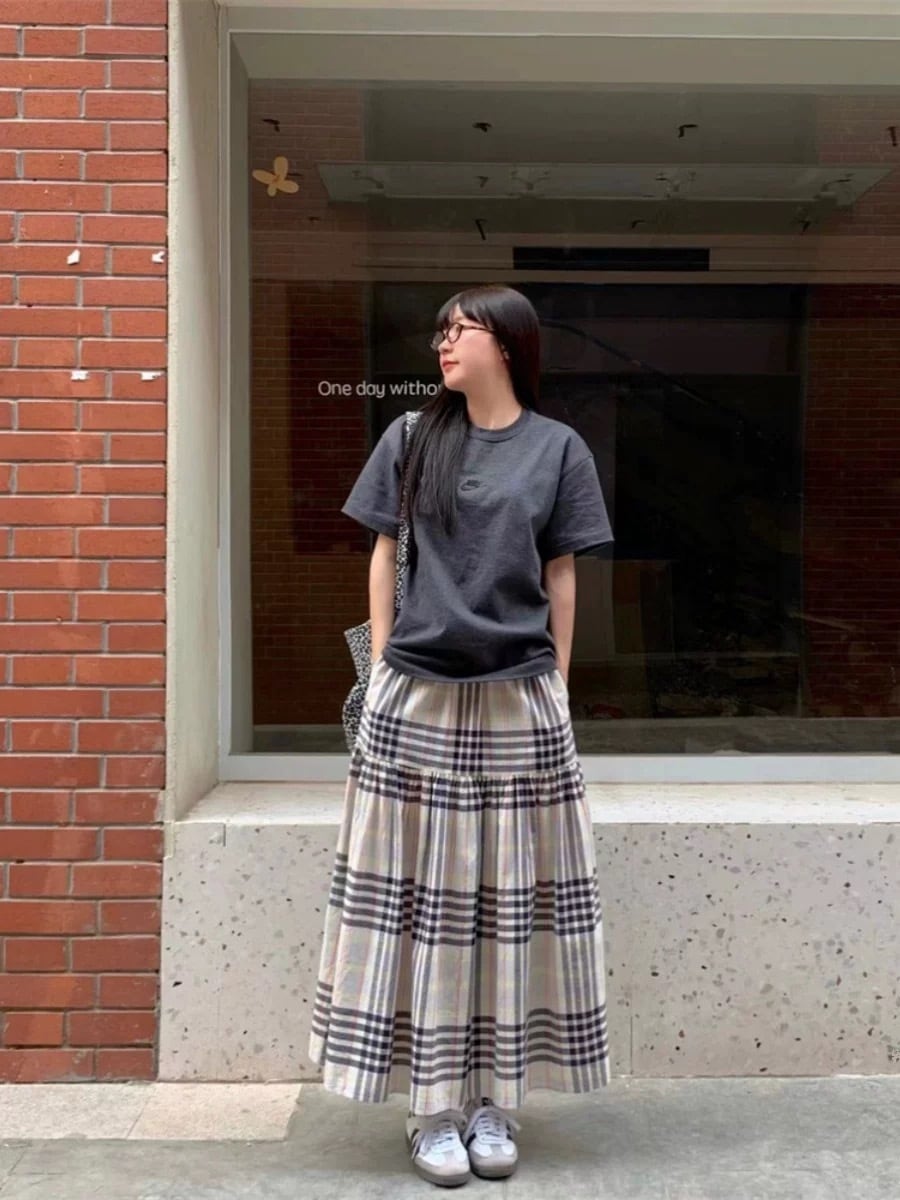 【予約販売】レトロ チェック柄スカート
