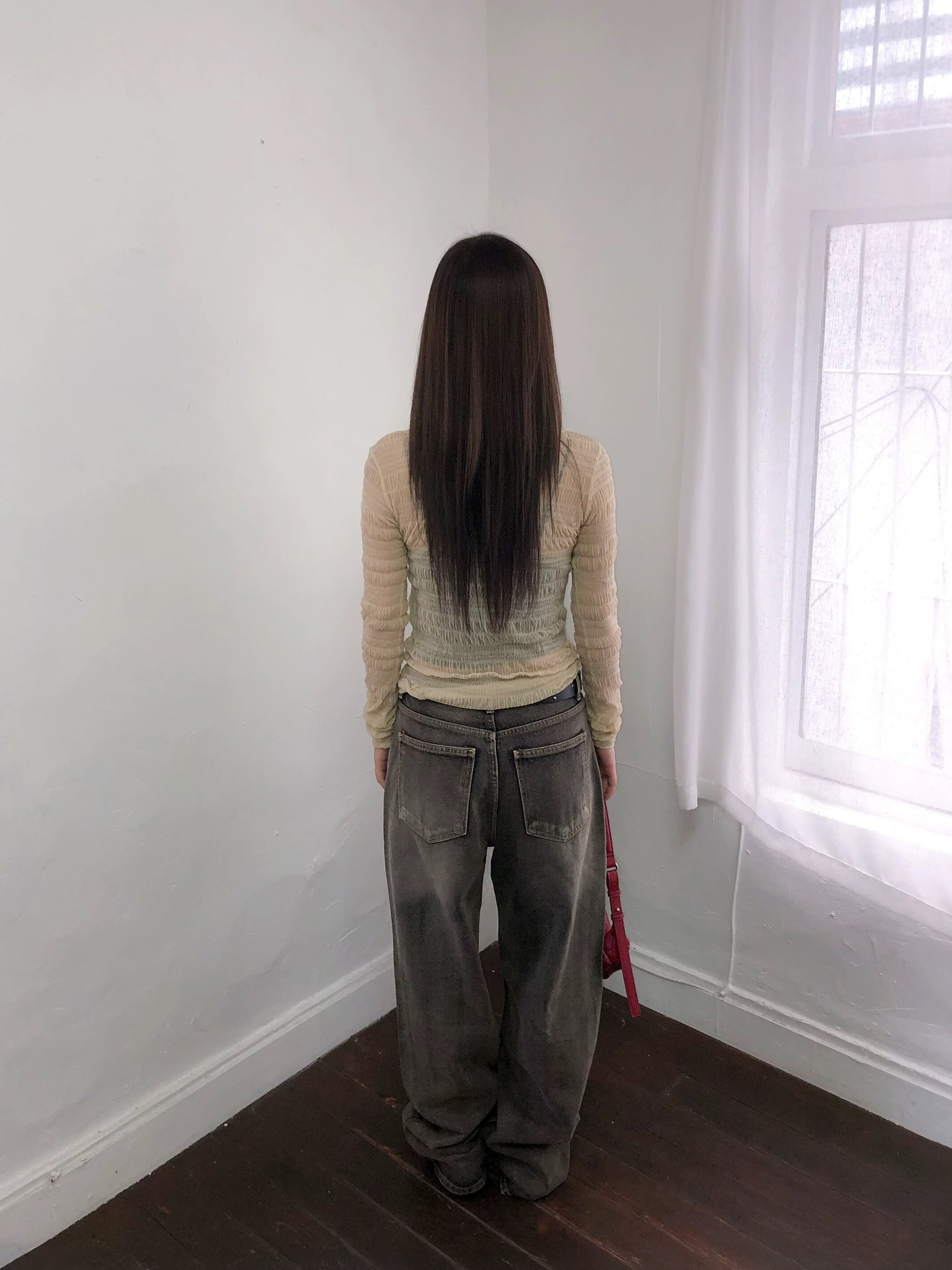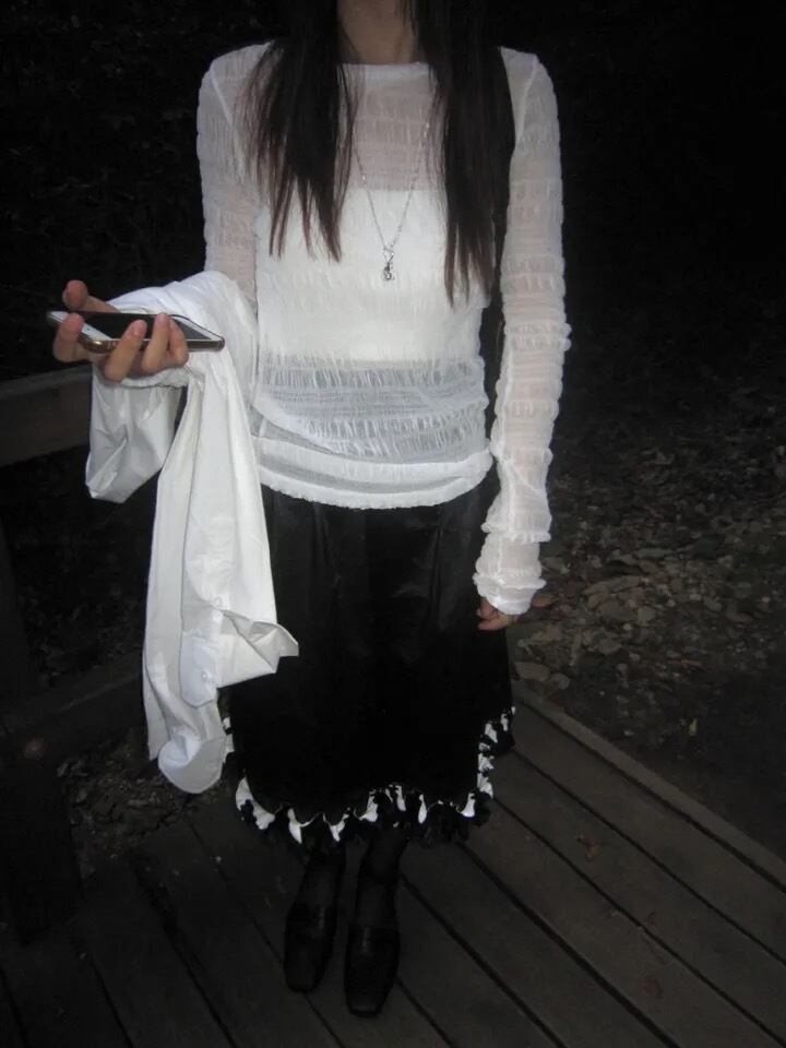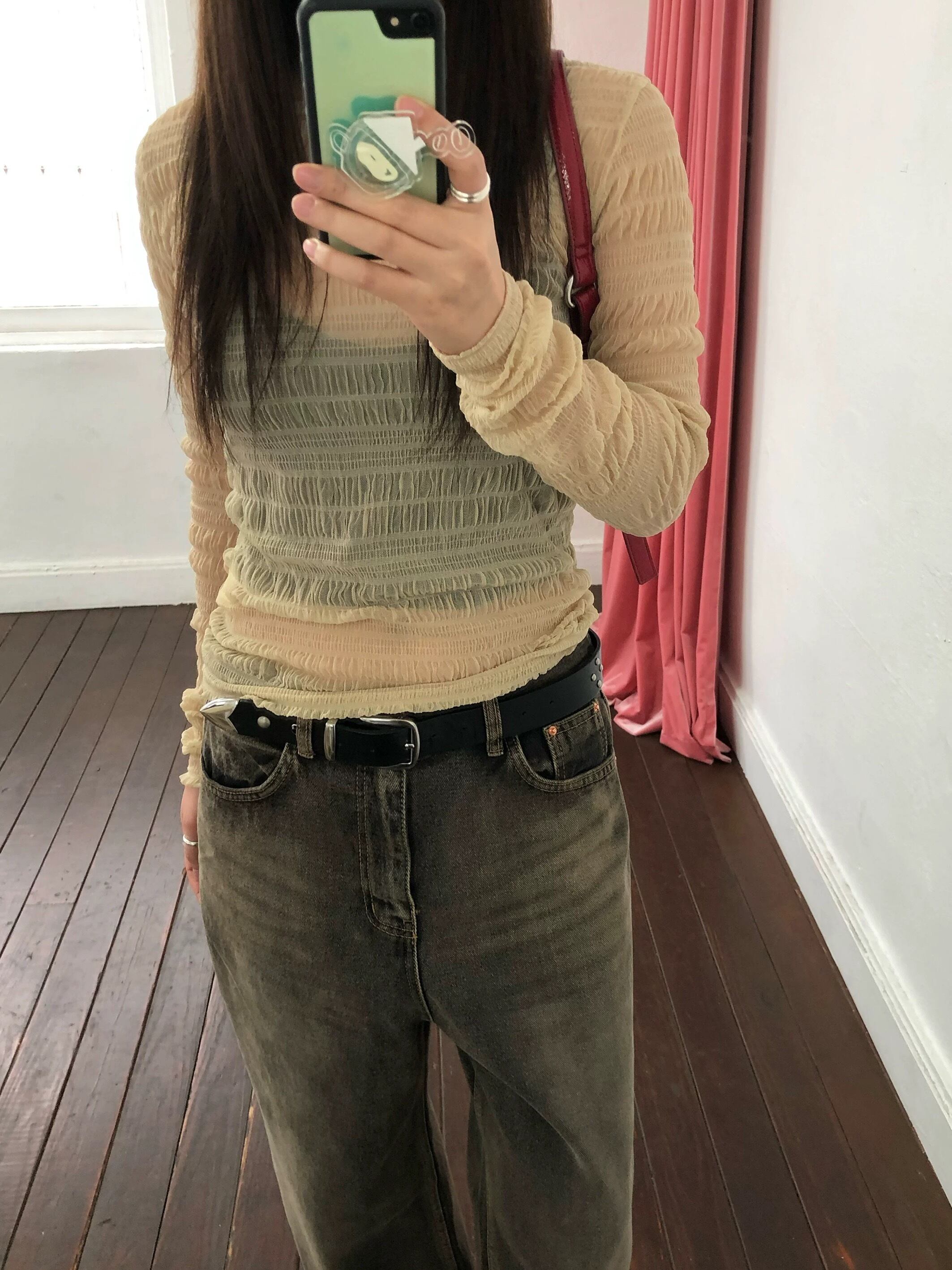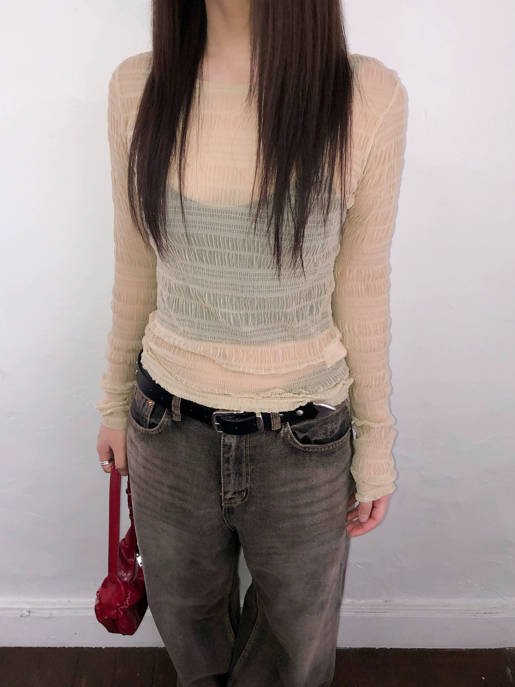 【予約販売】クシュクシュ シアーレース長袖Tシャツ
