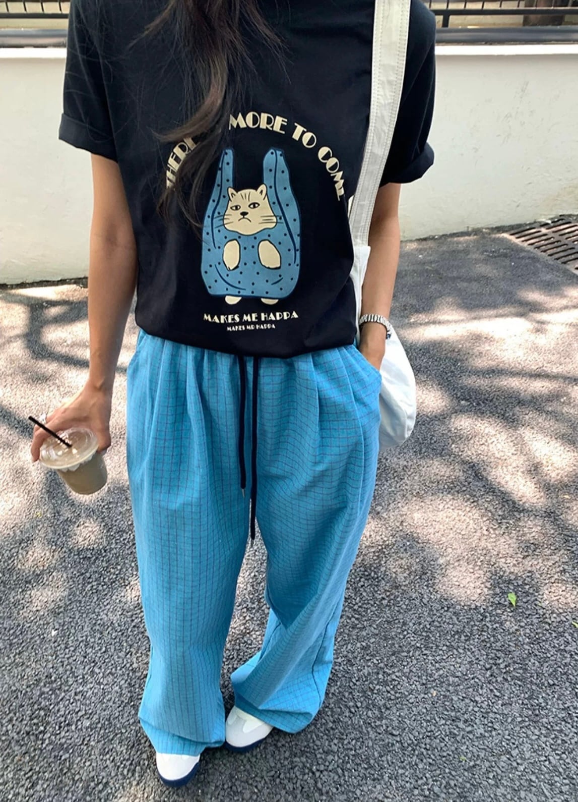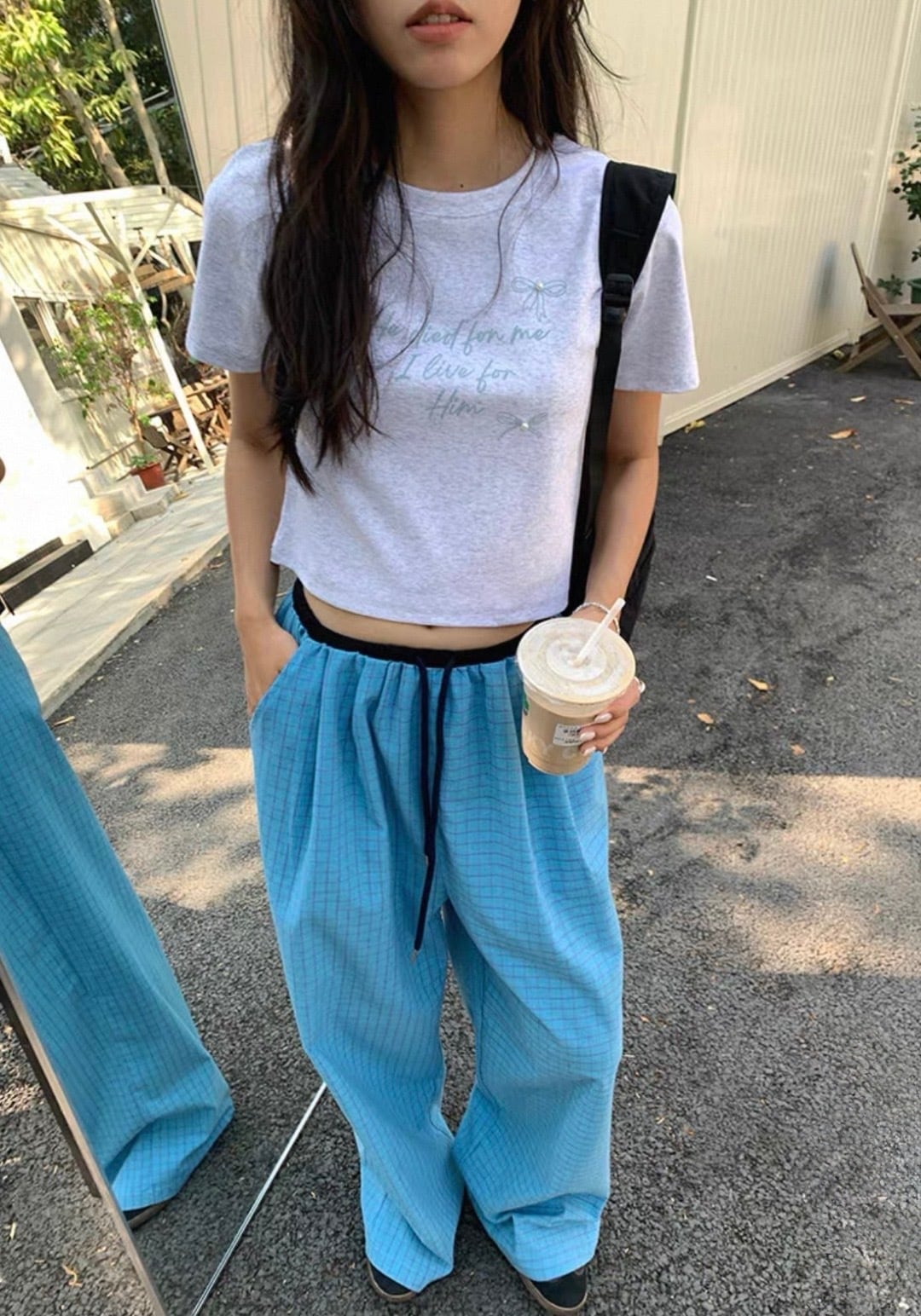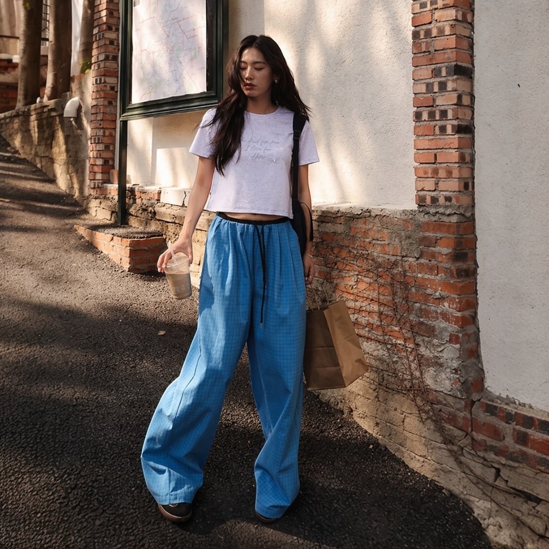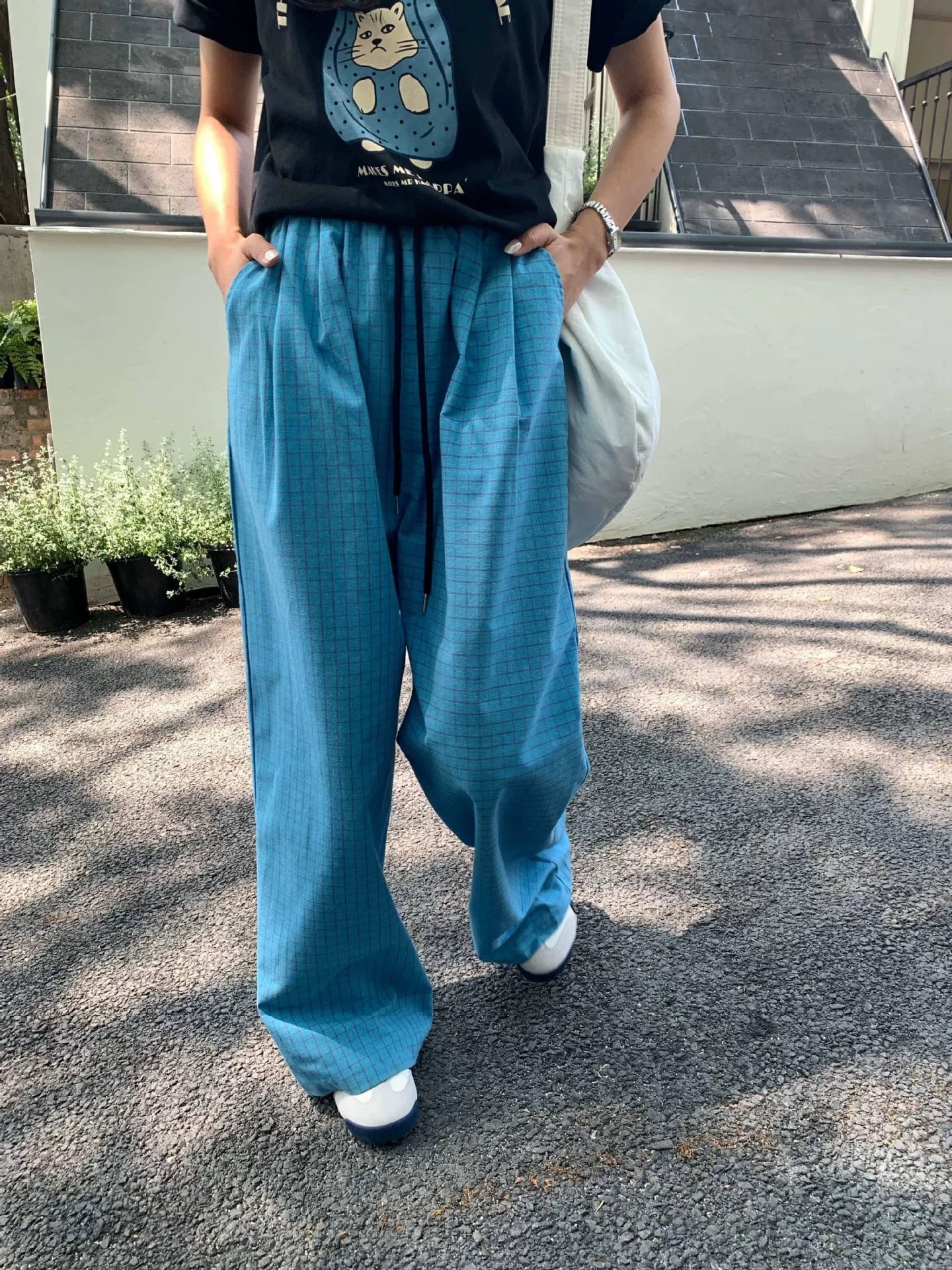 【予約販売】チェック柄イージーパンツ #ブルー